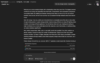 ChatGPT CO2 Tracker är ett kostnadsfritt tillägg för Chrome som syftar till att informera användare om den miljöpåverkan som deras konversationer med ChatGPT medför. Programmet visar användarnas koldioxidutsläpp och vattenanvändning per chatt samt totalt för alla interaktioner. Genom att visualisera dessa miljöeffekter, kan användare bli mer medvetna om och reflektera över sin användning av ChatGPT.